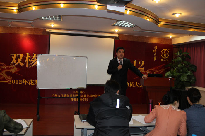 為了讓仟馳公司在2012年更好地為各加盟店、終端客戶服務(wù),為了使三月份舉行的“第十屆花期論道——中華國醫(yī)養(yǎng)生大道論壇”更加順利地進(jìn)行,仟馳公司特意于2012年2月4-6日,在廣州石井的水廠培訓(xùn)基地進(jìn)行了“雙核營銷3月全國會會前動員大會”。仟馳公司所有員工及各代理商的品牌團(tuán)隊參加了這次的動員大會。
